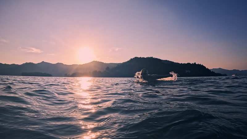 体育人体育魂,俩人硬是陪我游了2公里三小时,直到天黑饭店老板看着灶台上炖好的鱼汤焦急地在露台上寻找我们的身影。